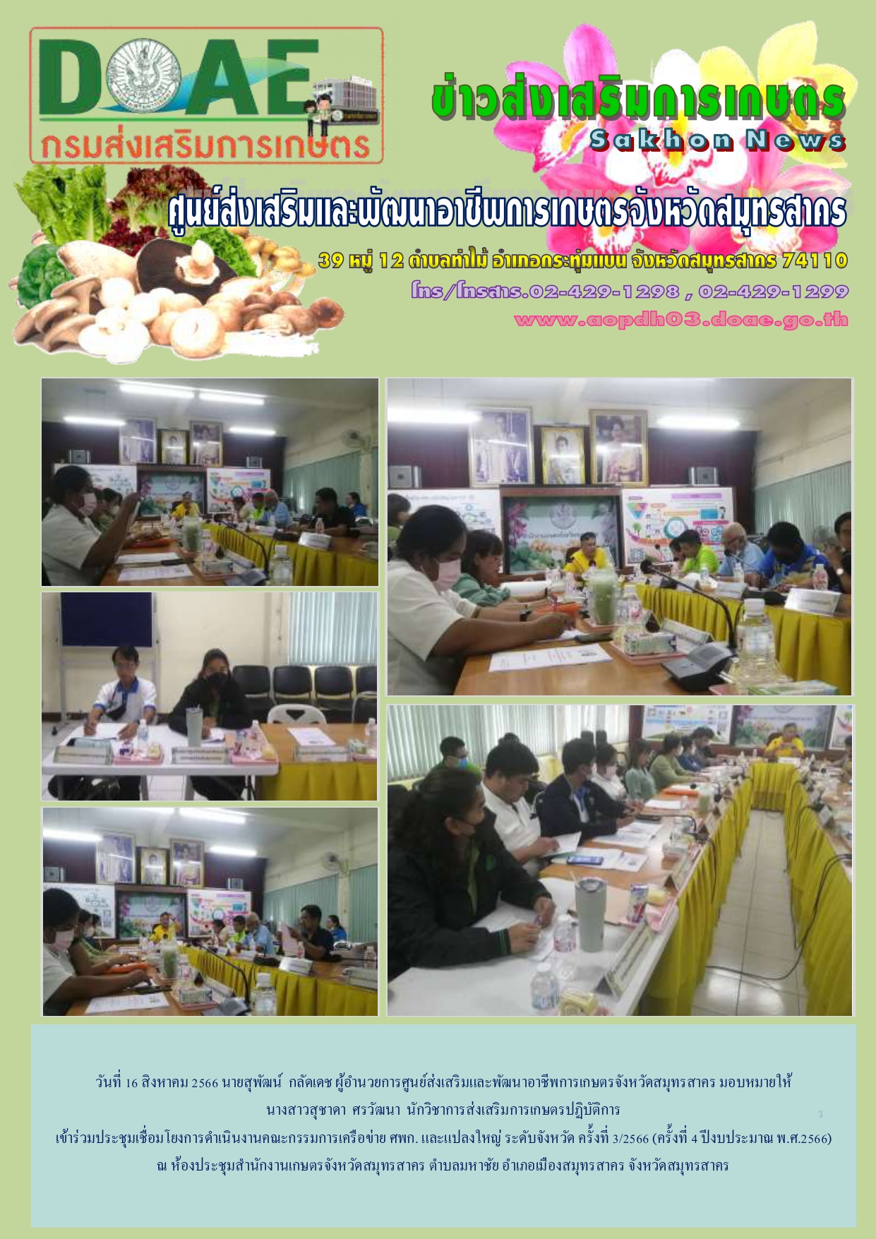 วันที่ 16 สค. 66 นายสุพัฒน์ กลัดเดช ผู้อำนวยการศูนย์ฯ มอบหมายให้ นส.สุชาดา ศรวัฒนา นวส.ปฏิบัติการ เข้าร่วมประชุมเชื่อมโยงการดำเนินงานคณะกรรมการเครือข่าย ศพก. และแปลงใหญ่ ระดับจังหวัด ครั้งที่ 3/2566 (ครั้งที่ 4 ปีงบประมาณ พ.ศ.2566)