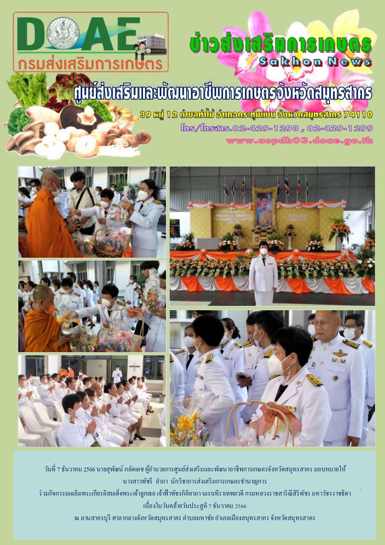 วันที่ 7 ธค. 66 นายสุพัฒน์ กลัดเดช ผู้อำนวยการศูนย์ฯ มอบหมายให้ นส.พัชรี อำภา นวส.ชำนาญการ ร่วมกิจกรรมเฉลิมพระเกียรติสมเด็จพระเจ้าลูกเธอ เจ้าฟ้าพัชรกิติยาภา นเรนทิราเทพยวดี กรมหลวงราชสาริณีสิริพัชร มหาวัชรราชธิดา เนื่องในวันคล้ายวันประสูติ 7 ธันวาคม 2566