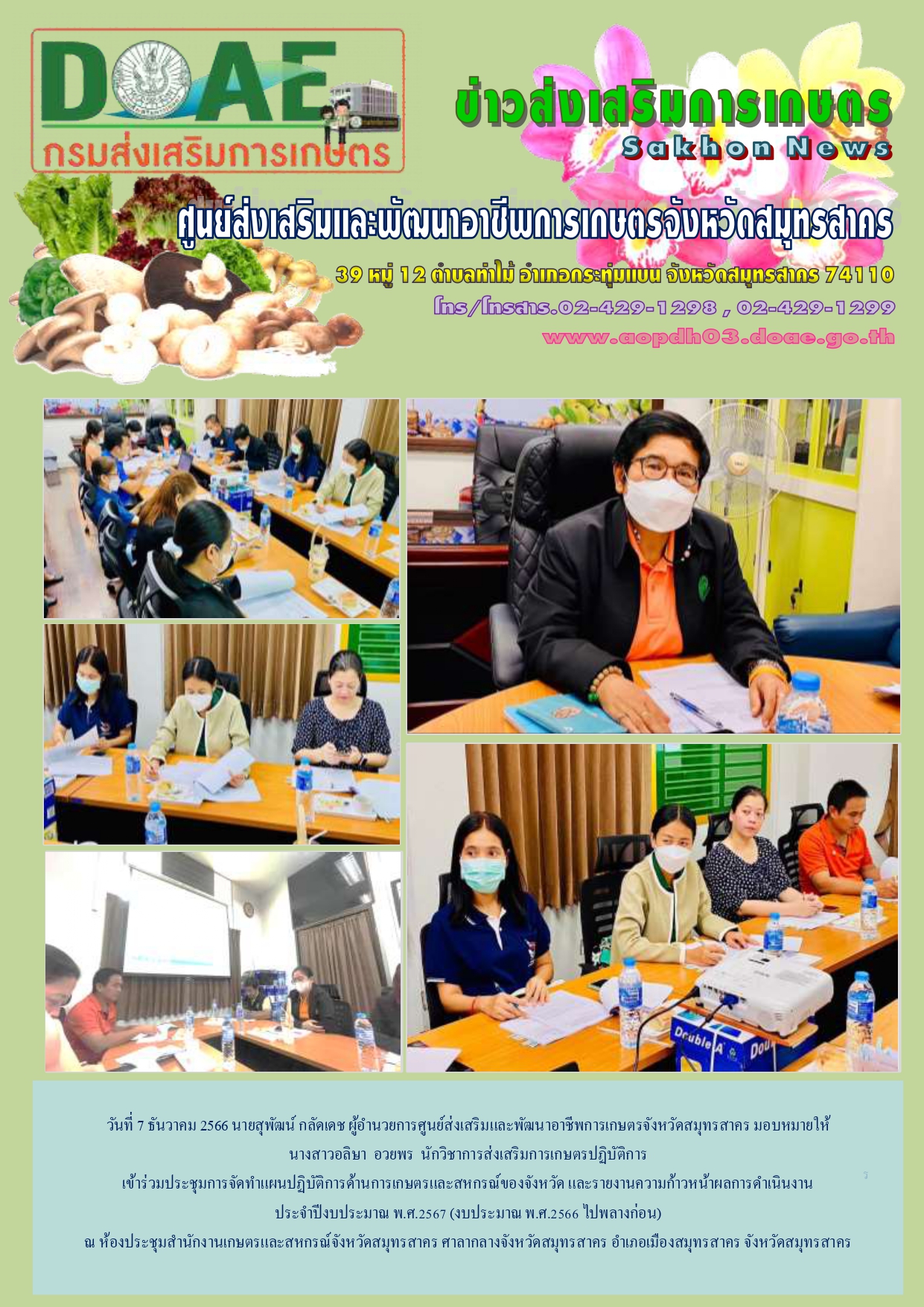 วันที่ 7 ธค. 66 นายสุพัฒน์ กลัดเดช ผู้อำนวยการศูนย์ฯ มอบหมายให้ นส.อลิษา อวยพร นวส.ปฏิบัติการ เข้าร่วมประชุมการจัดทำแผนปฏิบัติการด้านการเกษตรและสหกรณ์ของจังหวัด และรายงานความก้าวหน้าผลการดำเนินงาน ประจำปีงบประมาณ พ.ศ.2567 (งบประมาณ พ.ศ.2566 ไปพลางก่อน)