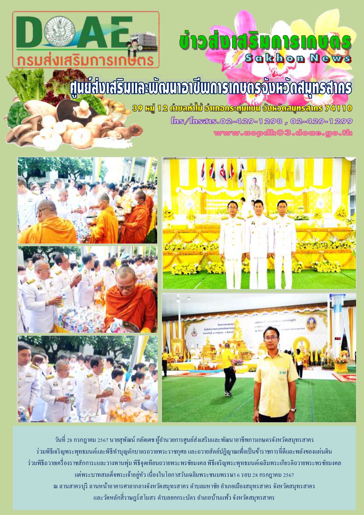 วันที่ 28 กค. 67 นายสุพัฒน์ กลัดเดช ผู้อำนวยการศูนย์ฯ ร่วมพิธีเจริญพระพุทธมนต์และพิธีทำบุญตักบาตรถวายพระราชกุศล และถวายสัตย์ปฏิญาณเพื่อเป็นข้าราชการที่ดีและพลังของแผ่นดิน ร่วมพิธีถวายเครื่องราชสักการะและวางพานพุ่ม พิธีจุดเทียนถวายพระพรชัยมงคล พิธีเจริญพระพุทธมนต์เฉลิมพระเกียรติถวายพระพรชัยมงคล แด่พระบาทสมเด็จพระเจ้าอยู่หัว เนื่องในโอกาสวันเฉลิมพระชนมพรรษา 6 รอบ 28 กรกฎาคม 2567