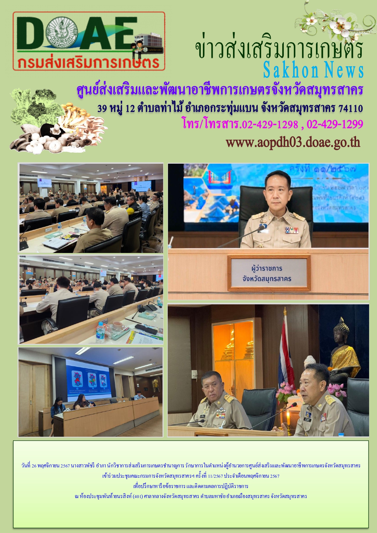 วันที่ 26 พย. 67 นส.พัชรี อำภา นวส.ชำนาญการ รักษาการในตำแหน่งผู้อำนวยการศูนย์ฯ เข้าร่วมประชุมคณะกรมการจังหวัดสมุทรสาครฯ ครั้งที่ 11/2567 ประจำเดือนพฤศจิกายน 2567 เพื่อปรึกษาหารือข้อราชการ และติดตามผลการปฏิบัติราชการ